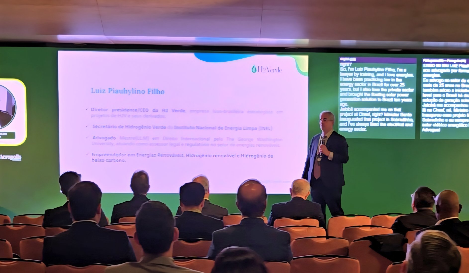 O evento contou com a participação de Luiz Piauhylino Filho, advogado com mais de 25 anos de experiência no setor elétrico e energético no Brasil. Ele discutiu a falta de pragmatismo na implementação de projetos de energia renovável, especificamente no que diz respeito ao hidrogênio e ao metanol.