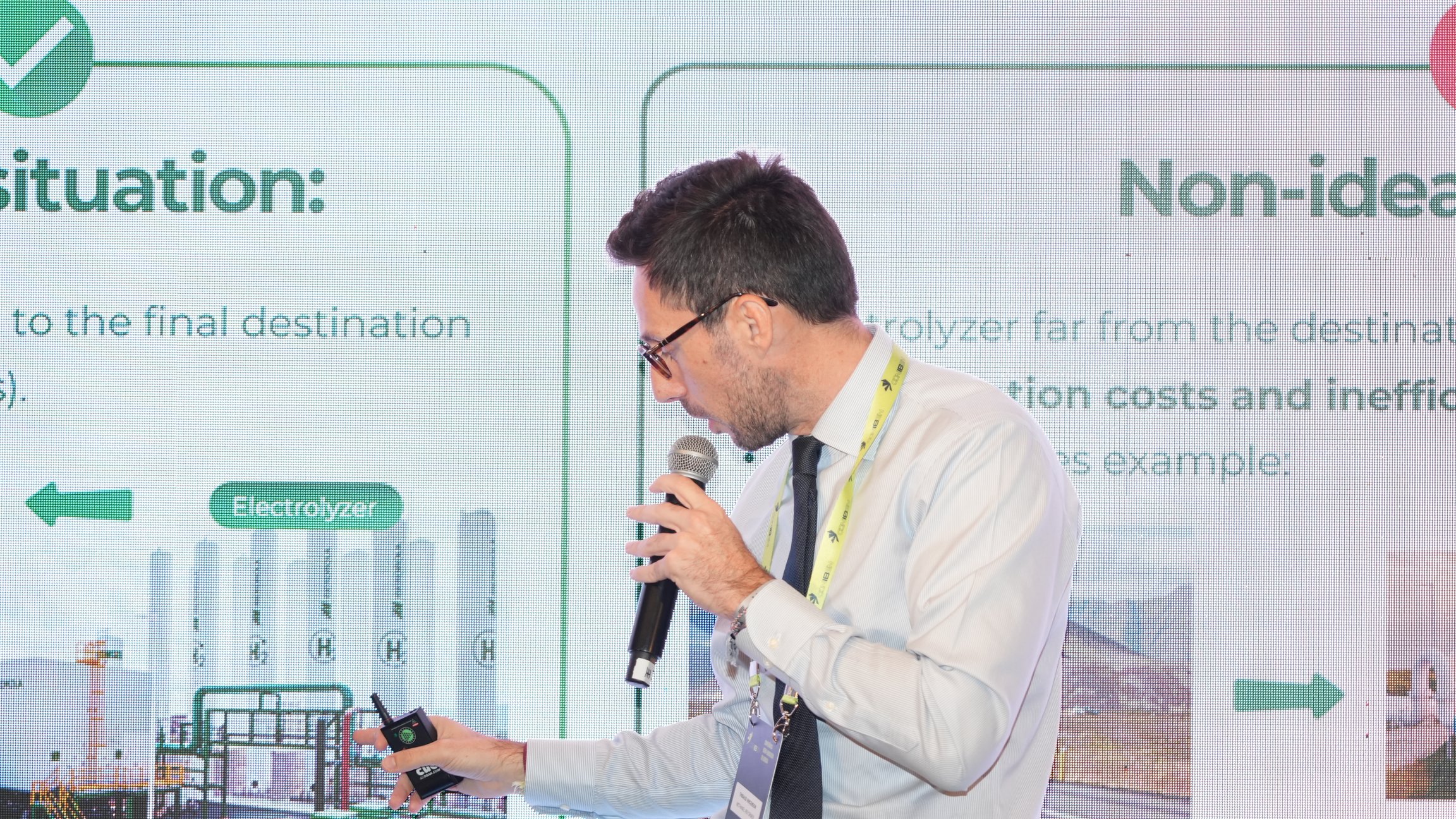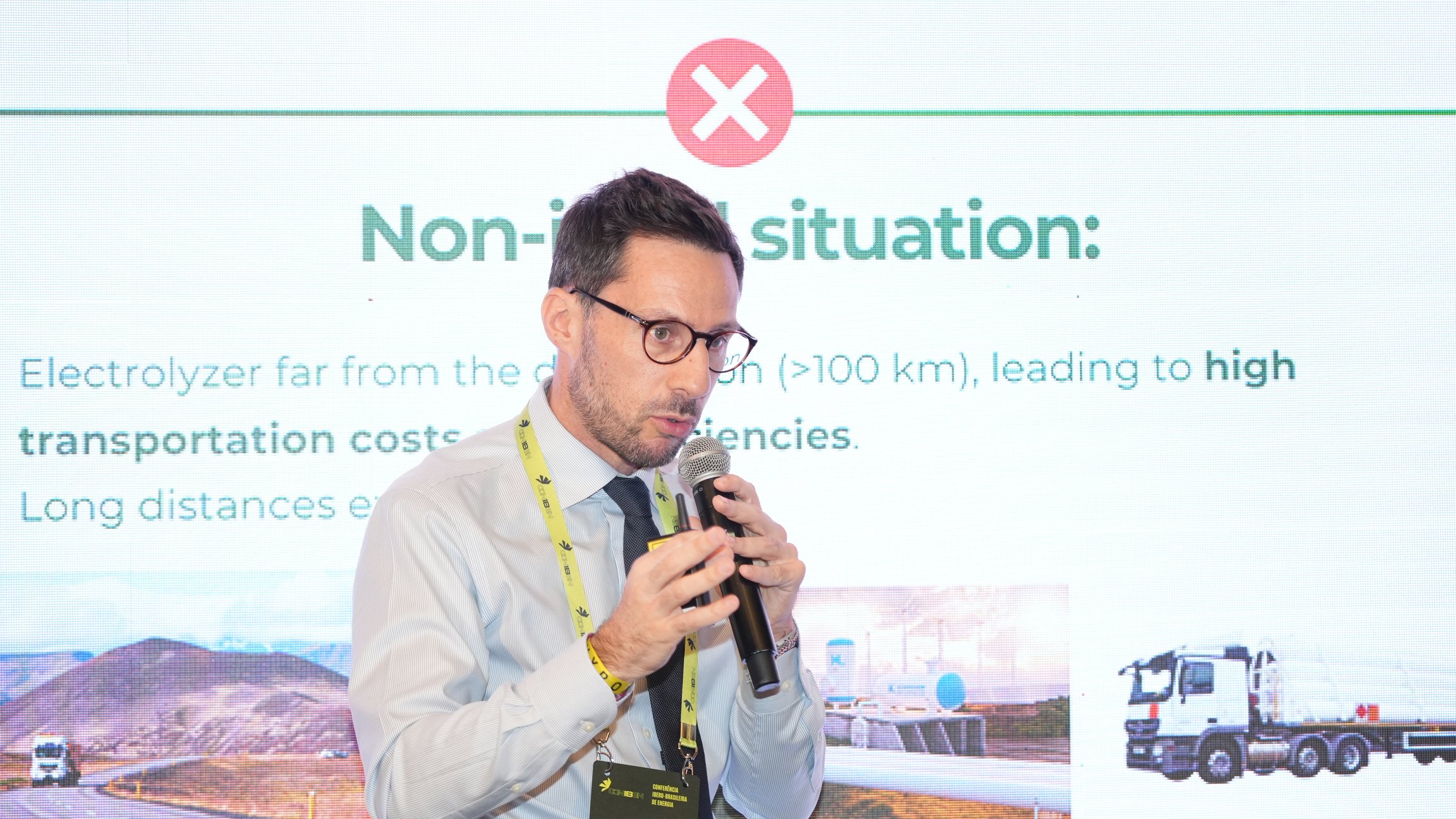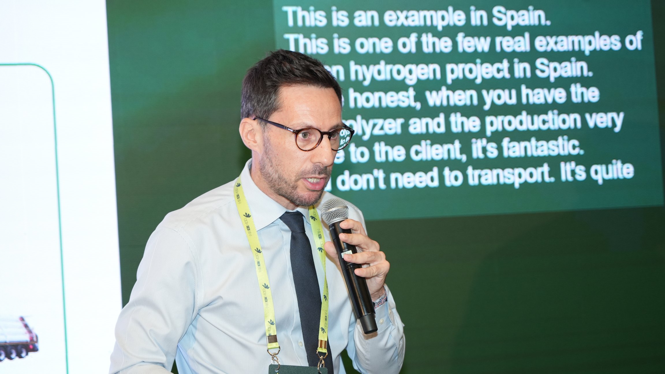 O palestrante, com experiência na indústria de óleo e gás, enfatizou a necessidade de soluções acessíveis e pragmáticas no setor de hidrogênio verde, destacando o progresso lento dos métodos tradicionais de eletrólise.