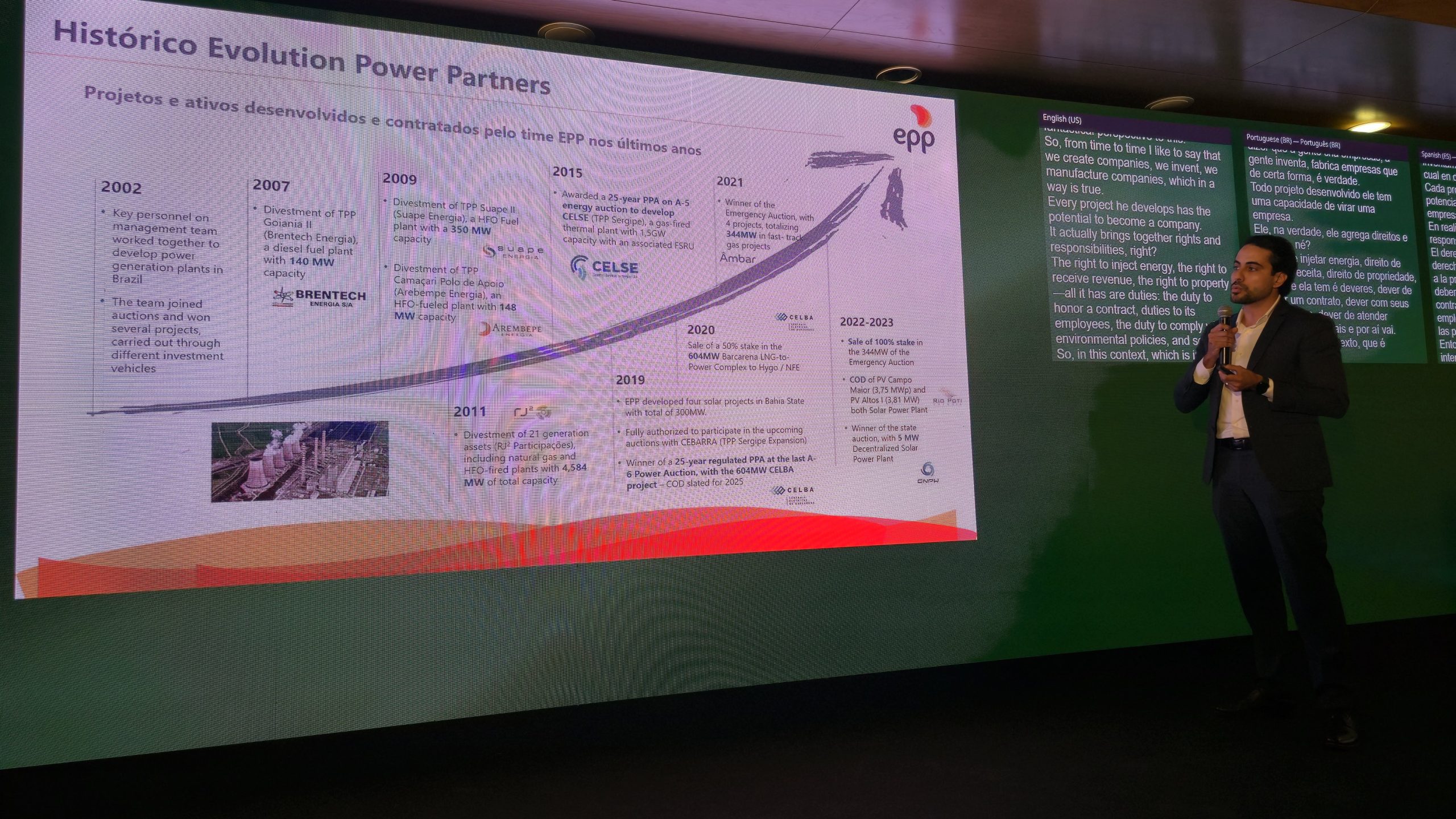 Durante a apresentação, o orador discutiu o papel fundamental do empreendedor no mercado de energia, enfatizando a importância de criar e desenvolver empresas que atendam às demandas do setor.