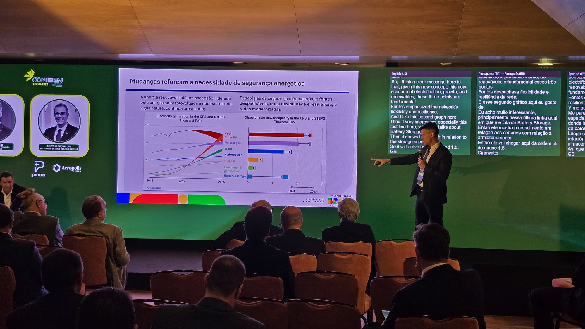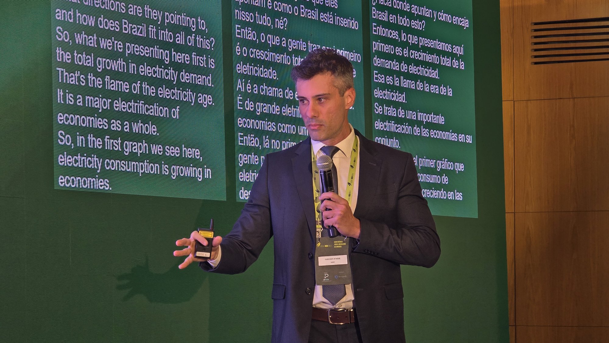 Os principais motores desse crescimento incluem ar-condicionado, data centers e veículos elétricos. A apresentação também abordou a necessidade de fontes de energia renováveis, como eólica e solar, e a importância de recursos despacháveis para garantir a flexibilidade e resiliência da rede elétrica. O Brasil, que já alcançou 50% de renovabilidade em sua matriz energética, enfrenta desafios significativos para manter a estrutura elétrica diante do aumento da carga. O Gustavo mencionou a necessidade de investimentos em modernização de redes e a importância de leilões de capacidade, incluindo um leilão focado em baterias.